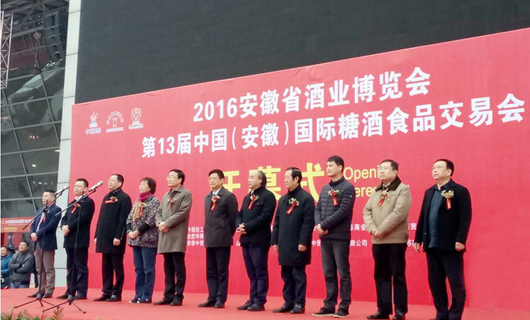 2016年第十三届中国(安徽)国际糖酒与食品交易会暨2016年第十三届中国(安徽)国际食品及加工包装机械展览会11月25日在安徽国际会展中心开幕。全国政协委员、原安徽省政协副主席王鹤龄,合肥市副市长王民生,安徽省酒业协会会长、古井集团董事长、党委书记梁金辉,江苏省酒类行业协会常务副会长、秘书长王建英等领导和嘉宾出席了开幕式。