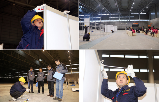 2016年12月21日下午,一场别开生面的展览工程技能大赛在合肥滨湖国际会展中心9#馆拉开帷幕,来自政文会展展览部、工程部的搭建工、电工在此进行标准展位搭建和展位接电技能比拼。比赛中参赛队员两两一组,奋勇争先,在擂台上比拼速度,在实战中考验技能,充分展示了深厚的技术功底。公司领导班子及各部门员工均到场为参赛队员加油助威,现场气氛热烈。