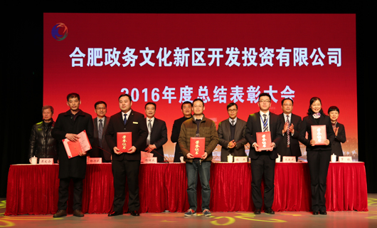 2017年1月20日下午,政投公司2016年度总结表彰大会暨2017年迎春联欢会在合肥大剧院多功能厅隆重举行。市国资委党委委员、副主任吴松莅临现场,公司领导班子成员陈杰、陈继良、文良武、杨兴武、罗钦,市国资委稽查员吴文会,公司各部门、各所属子公司、委托运营单位共350余人参加活动。