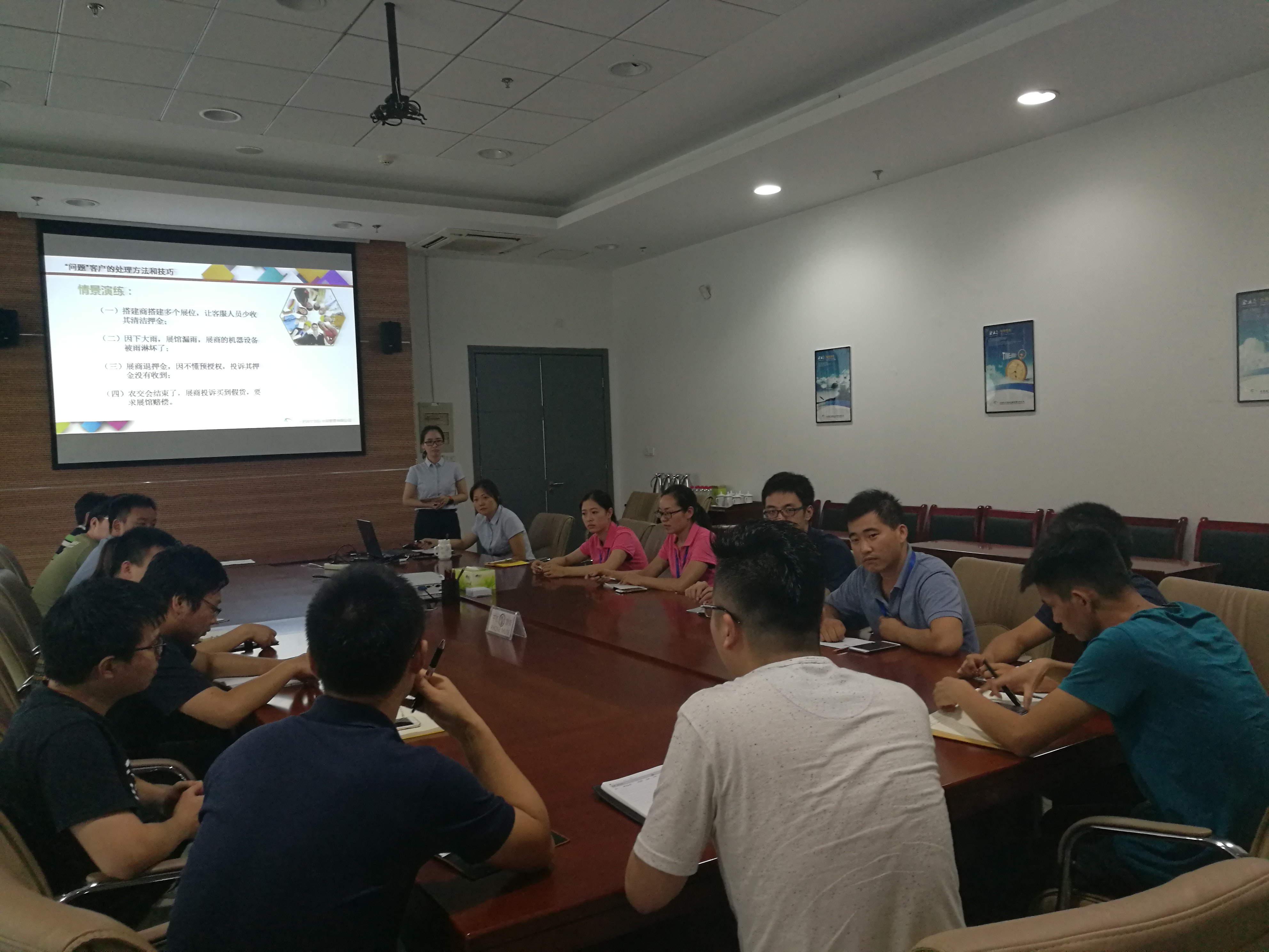 为提升专业技能,提高服务质量,进一步加强规范化管理,2017年8月3日,政文会展组织现场部门员工进行客户服务标准化培训。