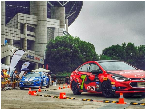 8月12日,雪佛兰科鲁兹“2017直通美国NASCAR环行王者挑战赛”合肥站比赛在合肥体育中心北广场炫耀开启。