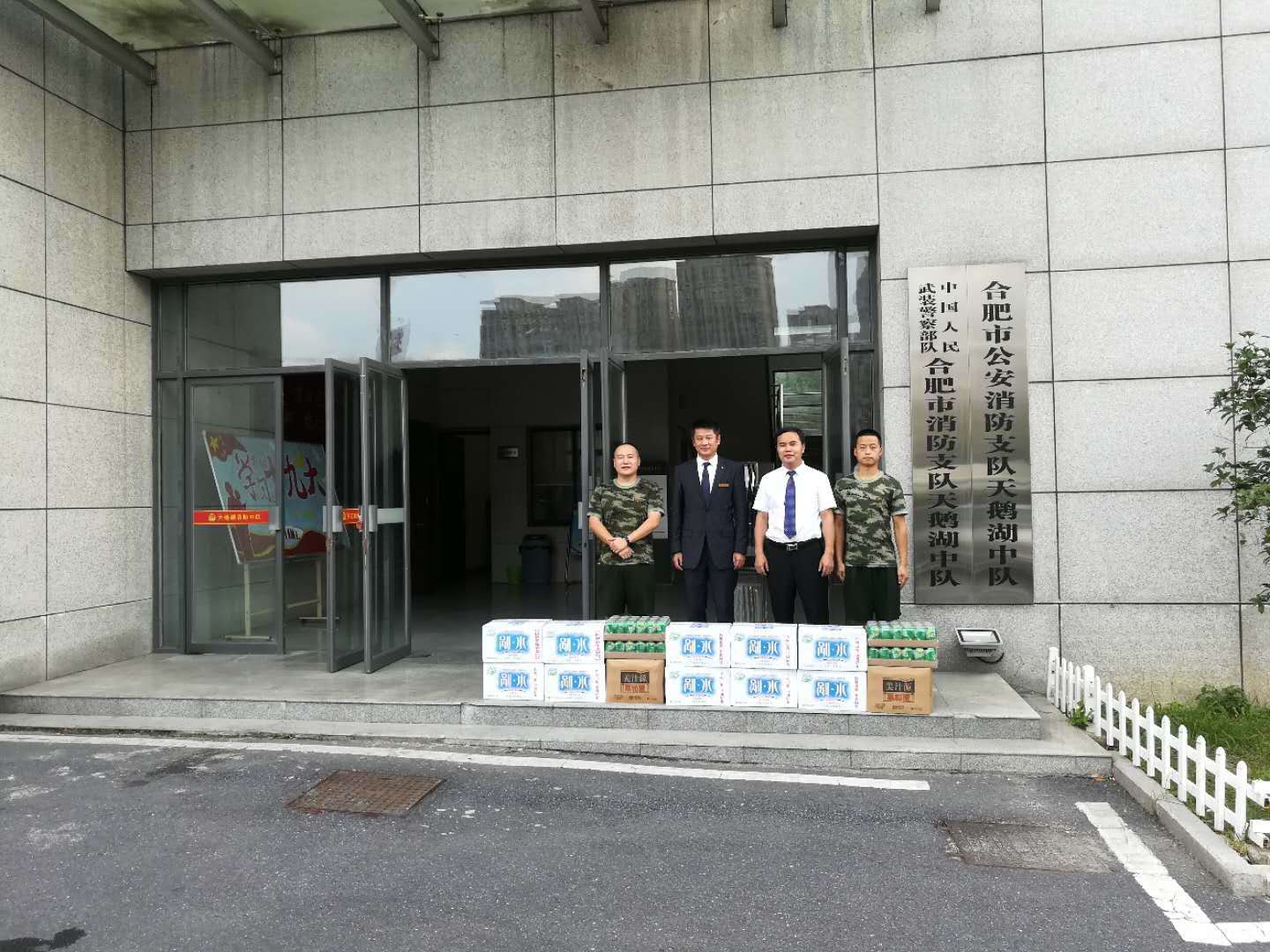 为进一步密切军民关系,积极开展拥军爱军活动,加强与辖区消防中队和谐共建,在建军91周年之际,泓瑞金陵大酒店党支部为天鹅湖消防中队官兵们带来饮用水、饮料等慰问品,表达了对消防官兵的深切慰问,感谢他们在祖国建设中做出的无私奉献。