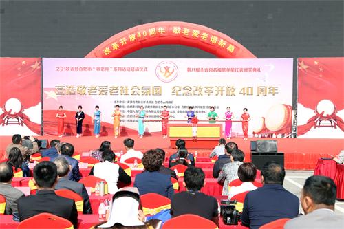 10月12日上午,2018年安徽省暨合肥市“敬老月”系列活动启动仪式暨第八届安徽省百名福星孝星代表颁奖典礼在安徽国际会展中心举行。本次活动由安徽省老龄工作委员会、合肥市人民政府主办,省老龄委主任、副省长张曙光,省老龄委副主任、省政府副秘书长刘卫东,省老龄委副主任、省民政厅厅长于勇,合肥市副市长彭庆恩等出席启动仪式。