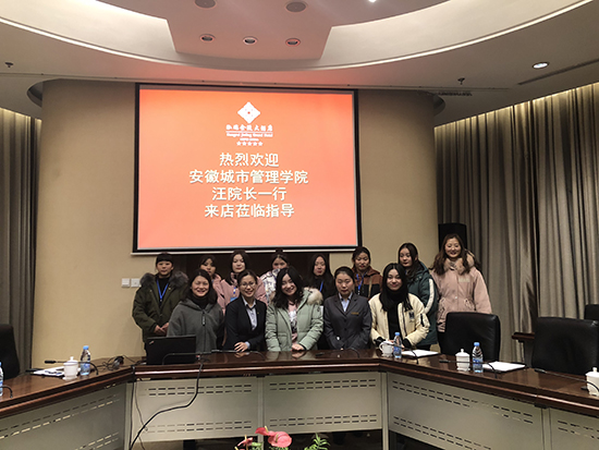 2018年12月13日下午,泓瑞金陵大酒店为来自安徽城市管理学院举办了座谈会,酒店人力资源部总监丁奕女士参加了会议,此次座谈会还邀请安徽城市管理学院汪欣院长参加。同时,安徽城市管理学院的10名新生来酒店参观。