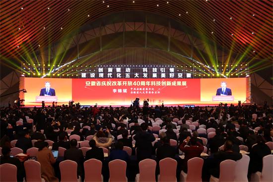 12月18日,安徽省庆祝改革开放40年科技创新成果展在合肥滨湖国际会展中心隆重开幕。省委书记、省人大常委会主任李锦斌宣布大会开幕,省委副书记、省长李国英主持开幕式,省委常委、合肥市委书记宋国权在开幕式上致辞。省四大班子领导,省直单位、市四大班子、市直单位、各市政府负责人等出席开幕式。展会持续举办至12月27日。