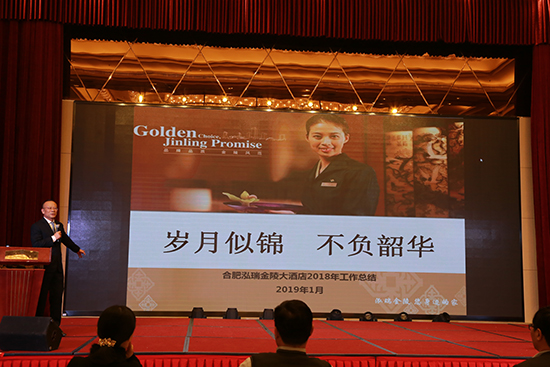 2019年1月25日,合肥泓瑞金陵大酒店在3楼泓瑞厅隆重举行2018年总结表彰大会暨2019年迎新春联欢会。 政投公司党委书记、董事长陈杰,政投公司党委副书记、董事、总经理龚俊,党政公司党委副书记、董事赵伟,政投公司党委委员、董事、副总经理、泓瑞金陵大酒店董事长杨兴武,政投公司党委委员、董事、总会计师罗钦等领导出席本次活动,泓瑞金陵全体职工约280人参加。
