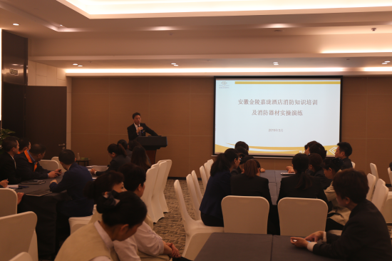 3月28日上午10:00,嘉珑酒店全体员工在酒店四楼嘉珑厅进行消防安全知识培训、消防器材实操以及疏散演练,总经理室成员、各部门负责人、客房人员、安保人员、保洁人员共计50余人参加培训和演练。