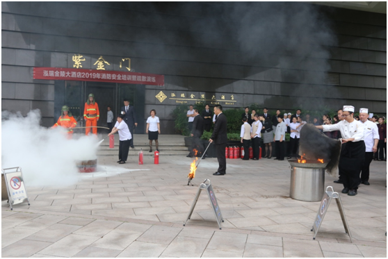 为落实安全主体责任,提高员工消防安全意识,保障酒店宾客及员工的人身安全,确保发生火灾时,掌握突发火灾的应变、逃生技能并增强自我保护能力。5月16日下午,泓瑞金陵大酒店组织开展2019年度消防安全培训暨灭火疏散演练,酒店组织全体员工参与此次演练。