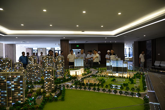 王文松一行先后来到合肥市国际人才公寓和合肥体育中心,实地查看人才公寓建筑沙盘、部分精装样板房和体育中心场馆相关场馆运营情况。