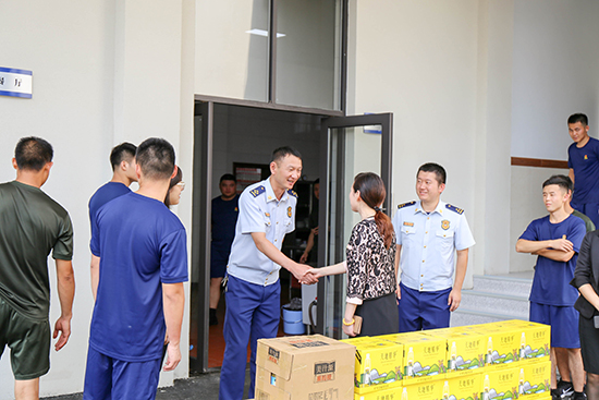 在慰问活动中,徐诚总经理感谢同志们对辖区企业经济建设保驾护航做出了贡献、同时指出我们企业应把部队的优良作风和组织管理、思想政治工作、制度建设等方面借鉴融入到酒店的经济管理中来,学习消防官兵顽强拼搏、积极奉献的精神风貌,使企业各项工作再上新台阶,共谱军民鱼水情新篇章。