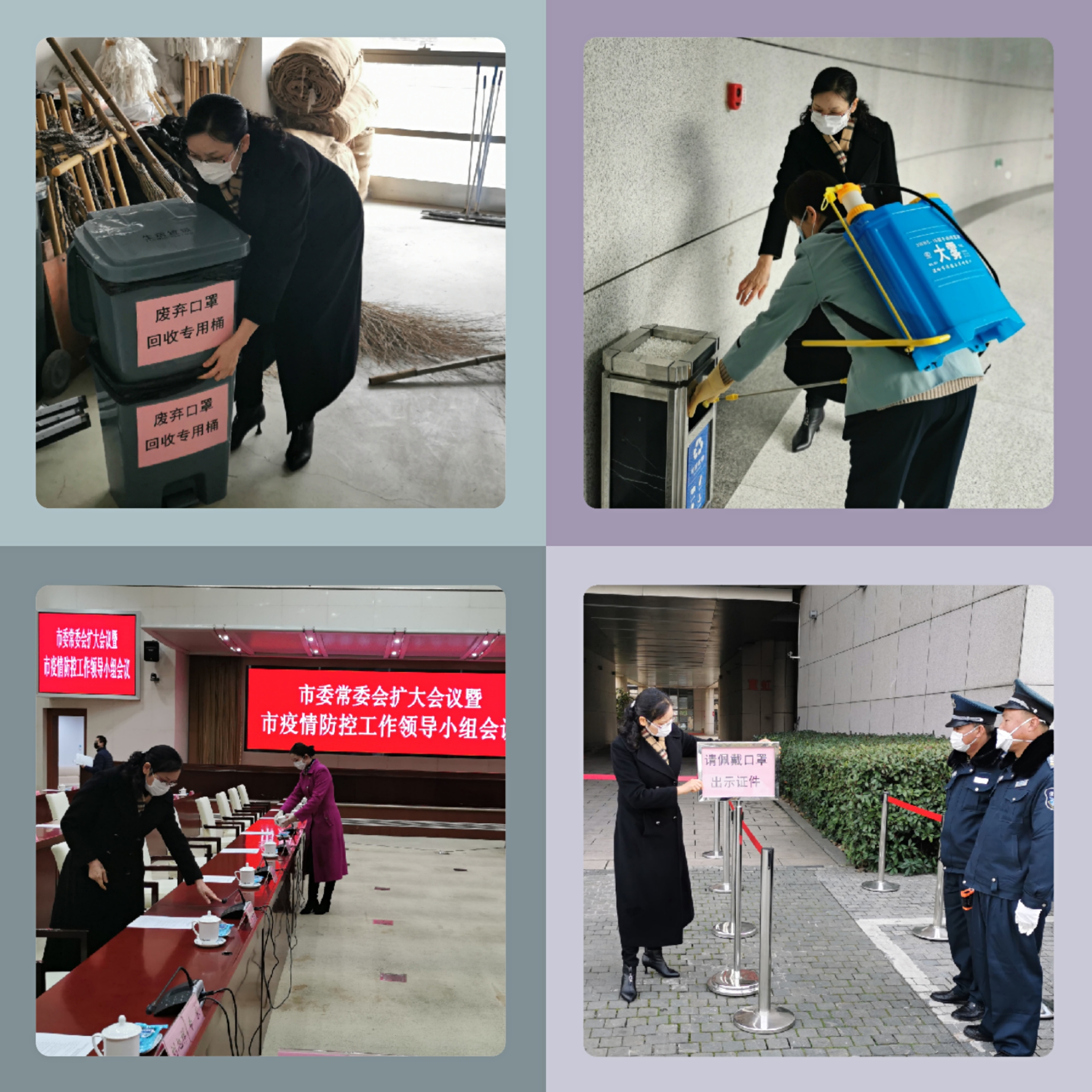走出家门,她一边打电话联系各部门负责人部署保障工作,一边自己开车往大楼会议中心奔去。与会议保障人员,摆台、检查杯具、调试话筒、卫生保洁,以最快的速度完成了各项会前准备工作,确保市领导的疫情防控会议正常有序召开。在之后的每一天,她都在现场督促在做好防疫宣传、驱车几十里,跑药房寻找防疫物资,在制定防疫方案落实防疫工作的同时带领各部门的员工配合业主单位做好各类临时现场、电视电话等会议保障工作。烫伤的手指在手套与84消毒水的侵袭下,不断的磨破、粘合,每每脱下手套,她都感觉钻心的痛。每每员工看到不忍心劝她休息时,她总是,我是党员,我要与大家并肩作战在一起,在一线。