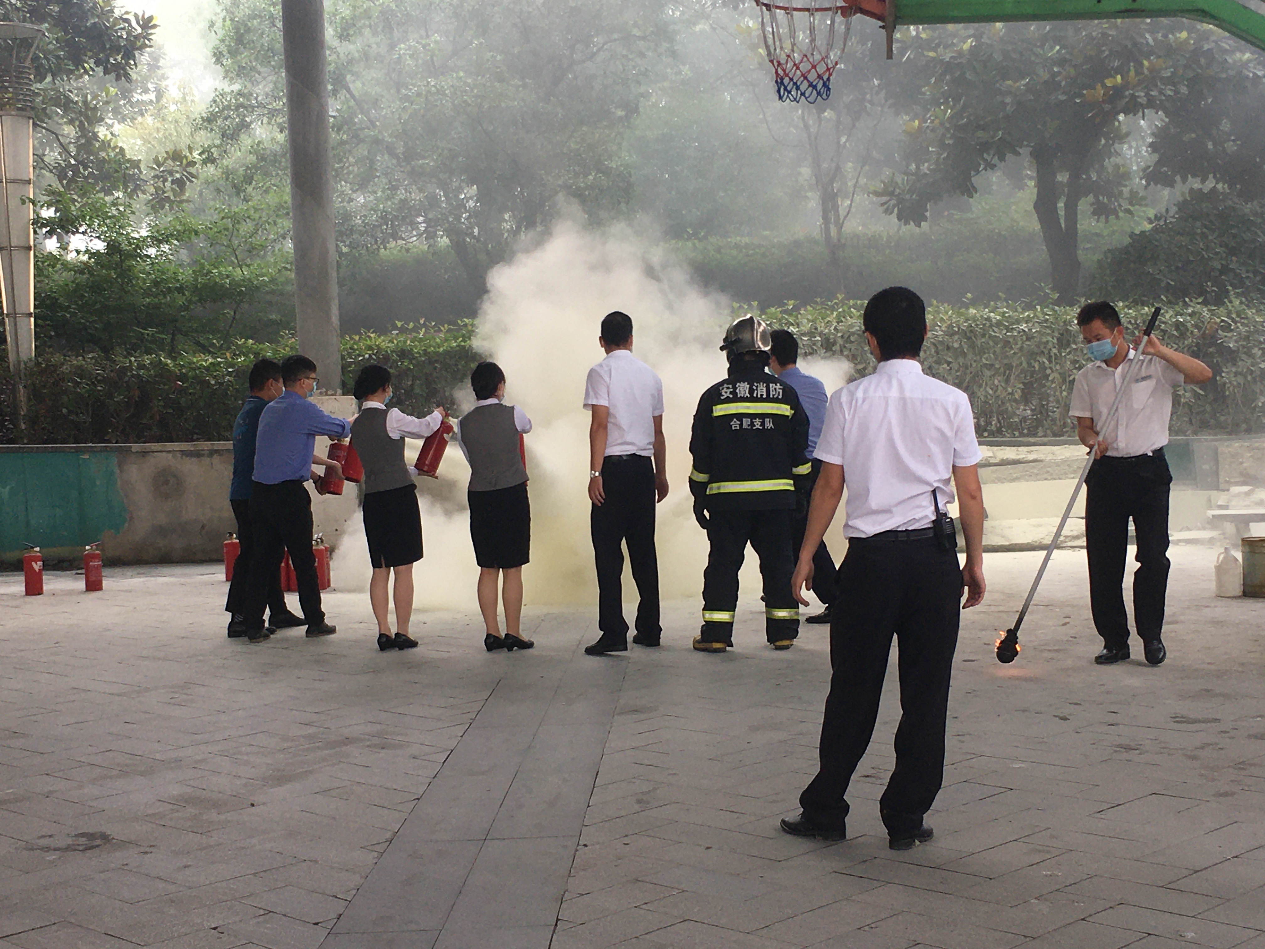 培训后,为提高员工实战经验和协同作战能力,组织所有员工在剧院外围汽车库集合,联合合肥消防支队天鹅湖中队在汽车库开展消防灭火演练。演练前消防队员向大家仔细讲解了灭火器的使用方法和注意事项,并做现场灭火演示。随后分组组织员工进行灭火实操演练。