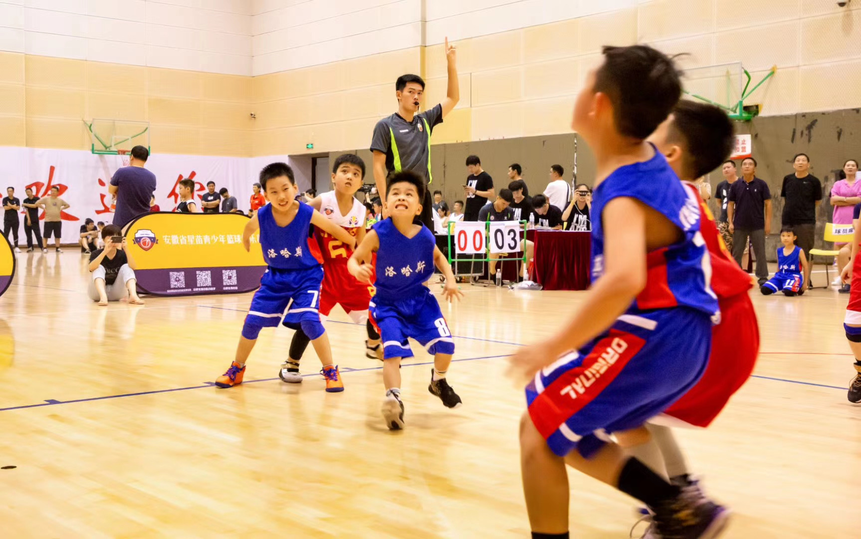 赛场上哨声响起,一颗篮球,两支队伍,小球员们激情满怀全力以赴,在球场上尽情挥洒汗水。