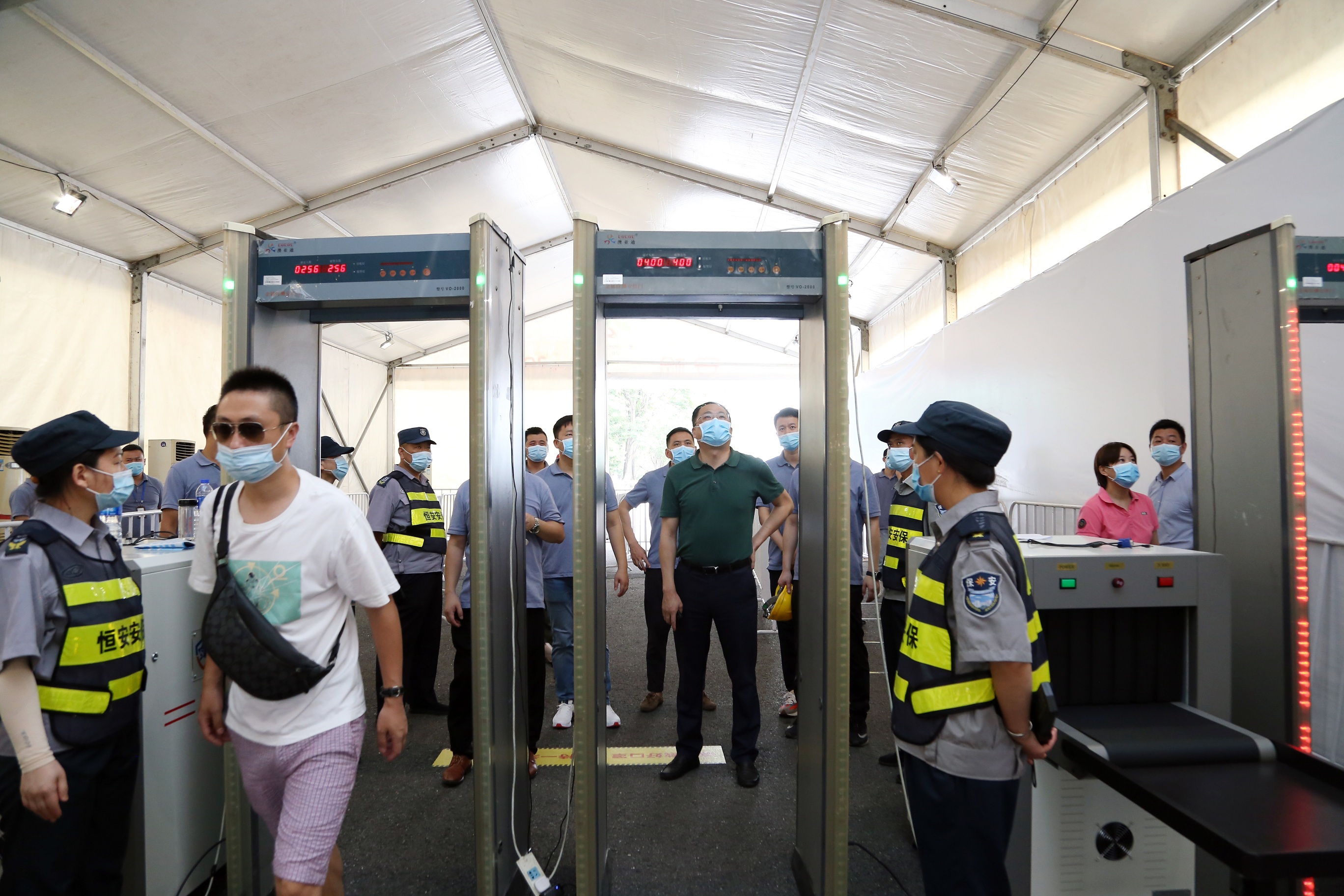 8月26日,政文会展负责人文良武带领公司中层以上管理人员进行展前检查,先后到滨湖会展中心登录大厅、一号道口、场馆内部,现场体验展会入场流程,查看布展情况,检查疫情防控措施落实情况。据悉,观众入场须从一号道口测体温、扫安康码、扫行程码,再经6号馆安检处复测体温,查验安康码、行程码,身份证核验,随身物品安检后进入场馆。文良武强调,各环节必须严格按流程操作,决不可大意松懈,确保为参展商和观众营造安全舒心的参展环境,保障展会布、开、撤展全过程安全顺利。