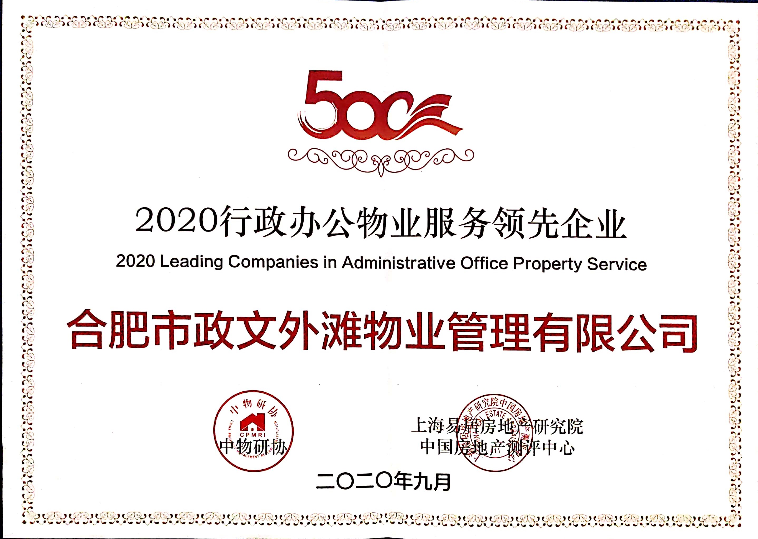 大会发布了2020全国物业管理行业发展指数报告最新成果以及2020年中国物业企业综合实力五百强、品牌价值百强等行业奖项。政文外滩物业凭借良好的发展成果和市场口碑,荣膺“2020物业服务企业综合实力500强”、“2020物业服务企业品牌价值100强”、“2020行政办公物业服务领先企业”等光荣称号。