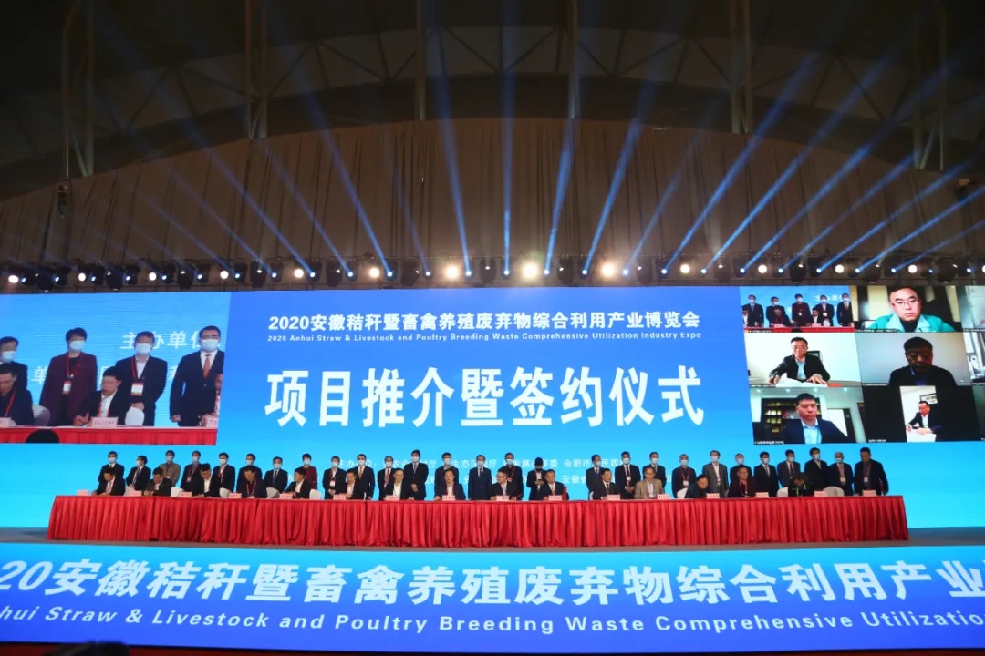 2020安徽秸秆暨畜禽养殖废弃物综合利用产业博览会于11月13日至14日在合肥滨湖国际会展中心举行,秸秆“变废为宝”的众多新产品、新技术、新装备、新模式亮相博览会。11月13日上午举行项目推介暨签约仪式,安徽省副省长张曙光,原农业农村部常务副部长、“三农”问题专家尹成杰,原中国农业大学校长、农村经济专家柯炳生等出席。
