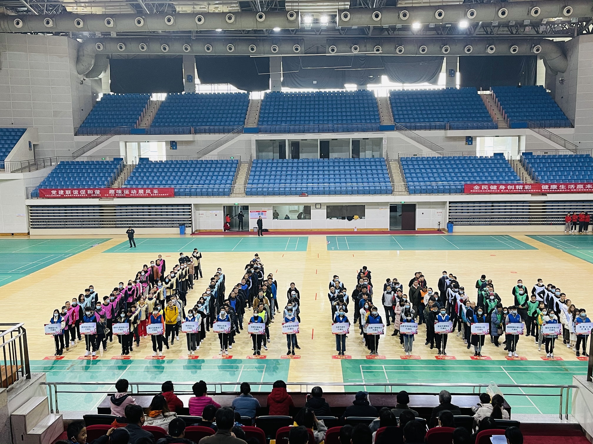 为贯彻落实国家《体育法》和《全民健身计划纲要》,推动辖区全民健身活动深入开展,提高广大群众的健身热情和身体素质,12月27日下午,由翠庭园社区党委、工作站、社居委,新蜀物业翠庭园管理处、长城物业森林海管理处、融科九重锦物业、国贸天琴湾物业、国建物业联合主办的翠庭园社区2020年党建联谊暨“庆元旦 迎新年”全民健康趣味运动会在合肥体育中心综合体育馆圆满举行。