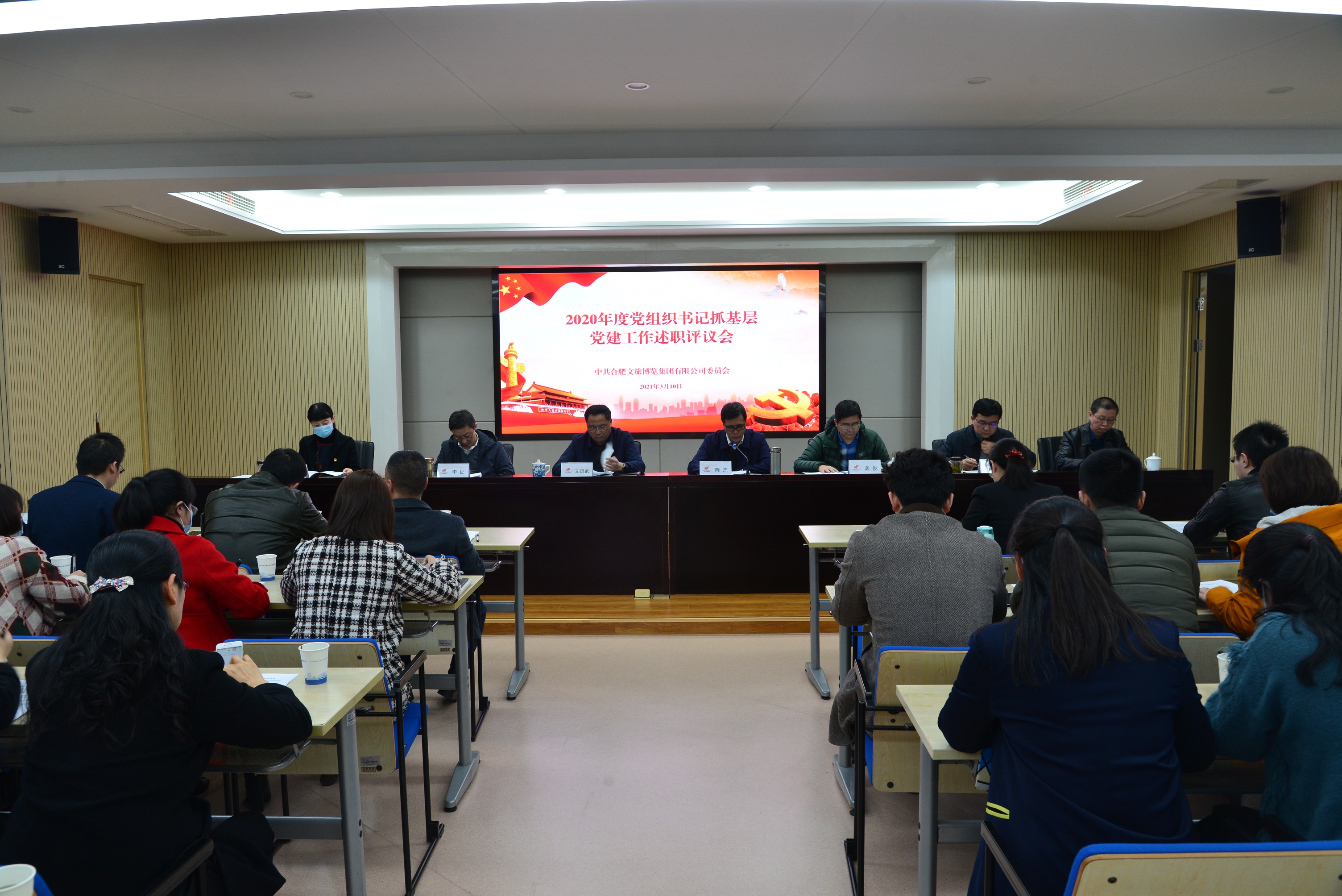 为推动全面从严治党向基层延伸,促进基层党组织建设全面进步、全面过硬,2021年3月10日下午,合肥文旅博览满冠体育(中国)官方网站2020年度党组织书记抓基层党建工作述职评议会。会议由集团公司党委书记、董事长陈杰主持。集团公司党委副书记、董事、总经理龚俊及其他党委领导班子成员,各党支部书记、委员,集团本部中层干部,所属企业党务部门负责人,部分党员代表共41人参加会议。
