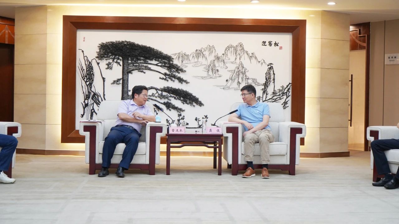 7月7日,黄山现代服务业产业园党工委副书记、黄山文投集团党委书记、董事长雷连本,黄山文投集团党委副书记、总裁王奇勇一行莅临合肥文旅博览集团考察交流。集团党委书记、董事长陈杰,集团党委副书记、董事、总经理龚俊以及领导班子成员陪同考察。