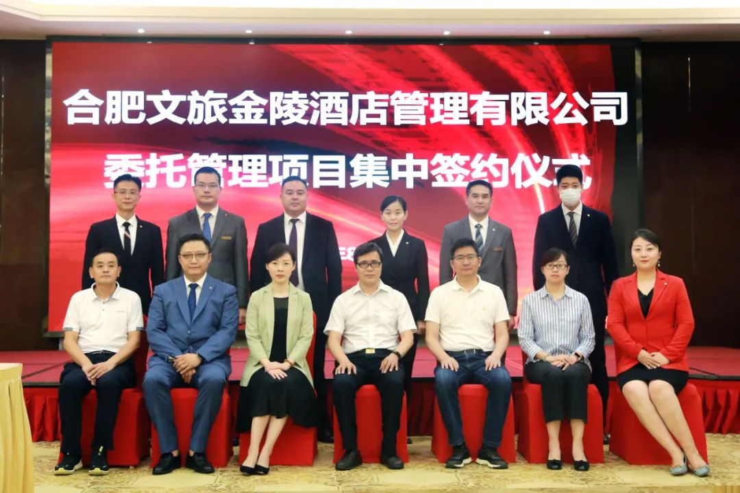 8月20日,合肥泓瑞金陵大酒店、合肥金陵嘉珑酒店、合肥奥体宾馆委托合肥文旅金陵酒店管理有限公司管理合同签约仪式,庐江香舍花园度假酒店委托管理意向合同签约仪式圆满举行。合肥文旅博览集团党委书记、董事长陈杰,合肥文旅博览集团党委副书记、董事、总经理兼合肥文旅金陵酒店管理公司董事长龚俊,合肥文旅博览集团财务部、规划发展部部长兼合肥文旅金陵酒店管理公司董事姜鸣,合肥文旅金陵酒店管理公司董事、总经理兼合肥泓瑞金陵大酒店总经理徐诚,合肥金陵嘉珑酒店总经理王璐,庐江香舍花园度假酒店总经理陶其本出席本次签约仪式,共同见证了这一具有里程碑意义的重要时刻。
