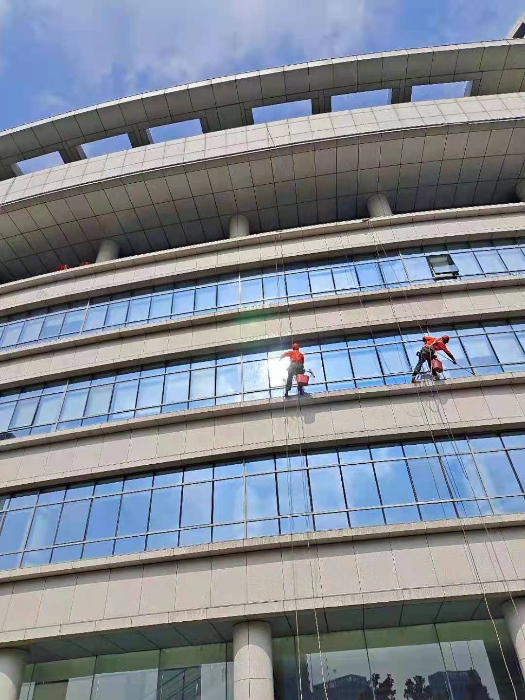 中国共产党合肥市第十二次代表大会将于9月24日至28日在合肥市政务中心隆重召开,这是合肥市五年一次的盛事。为了给参会代表营造干净明亮、整洁舒适的会议办公环境,更好地做好此次重大会议保障工作,政务综合楼项目部自2021年9月5日起,开始对合肥市政务中心所有楼体外墙玻璃及石材进行清洗。