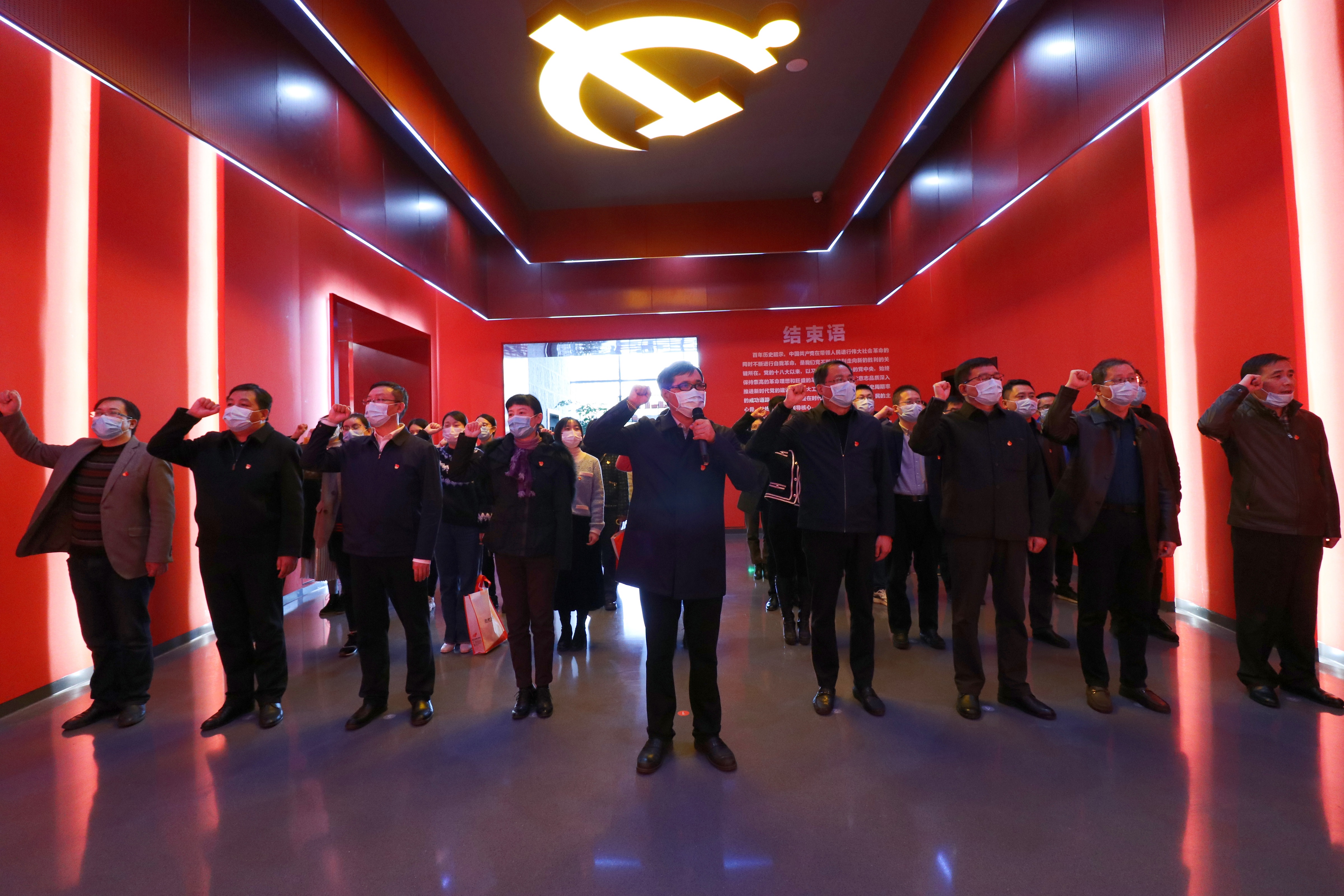 最后,在集团党委书记陈杰同志的领誓下,全体党员整齐列队,神情肃穆,庄严肃立,面对党旗举起右拳,重温入党誓词。声声誓言,坚定有力,充满信念。