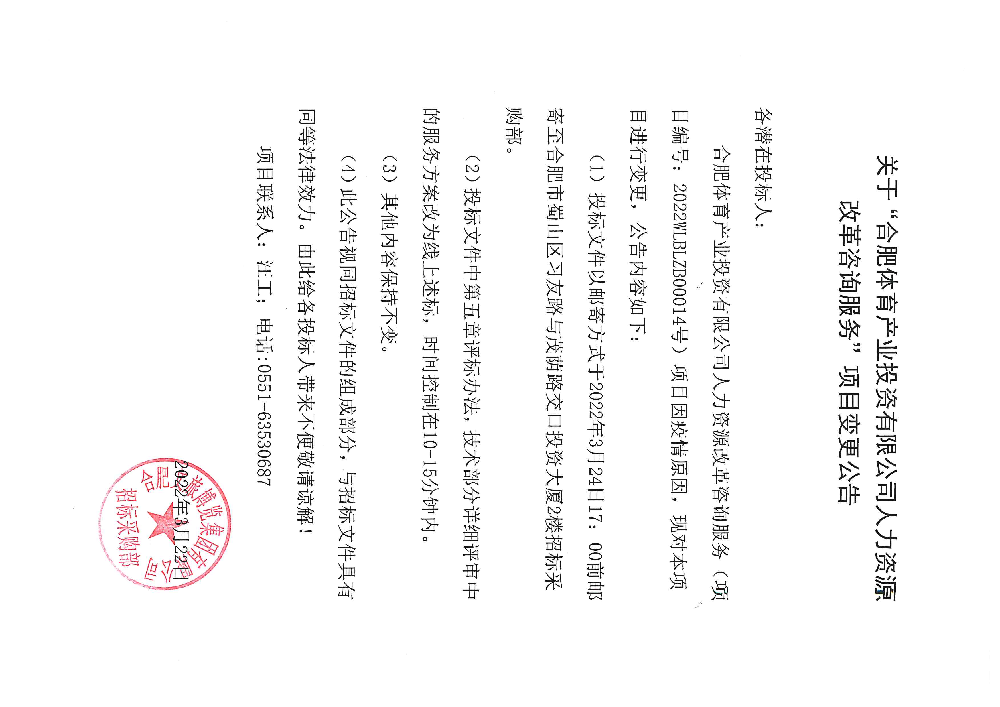 合肥体育产业投资有限公司人力资源改革咨询项目变更公告