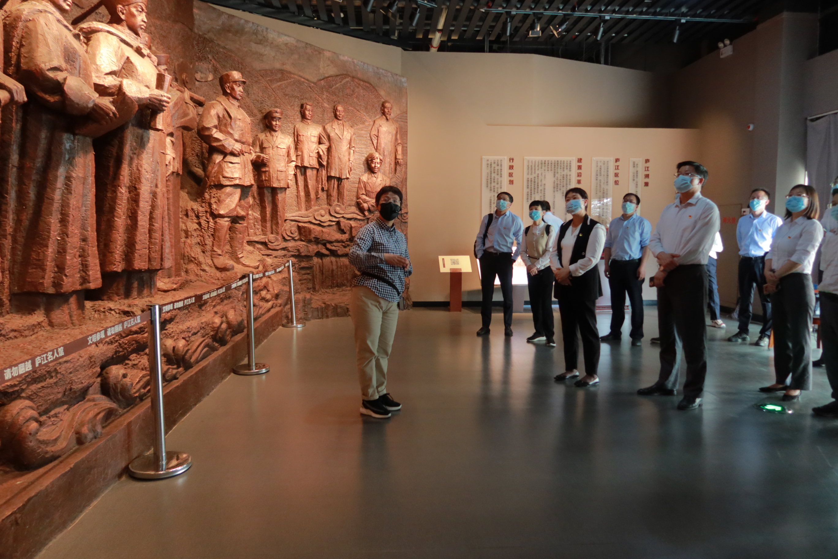 活动第一站是参观安徽省首家县级名人馆——庐江名人馆。随着讲解员的讲述,透过一幅幅珍贵的历史图片、文献资料,让大家回顾了革命前辈艰苦奋斗的光辉历程,追忆革命先烈峥嵘往事,深切缅怀革命先烈丰功伟绩。