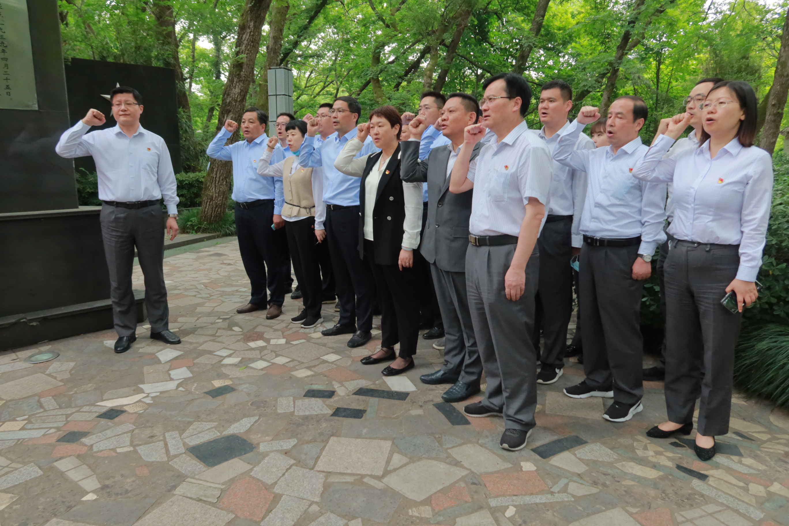 活动第二站是参观新四军江北指挥部。广大党员认真聆听了革命烈士的英勇事迹,详细了解新四军发展史,缅怀老一辈无产阶级革命先烈的英雄事迹,特别被叶挺的著名诗句“云中美人雾里山,立马汤池君试看,千里江淮任驰骋,飞渡大江换人间”深深地感染,进一步增强了大家的历史责任感和使命感。随后,全体成员在纪念馆内重温了入党誓词,用铿锵有力的誓言表达了对党忠诚、为党尽责的坚定决心。