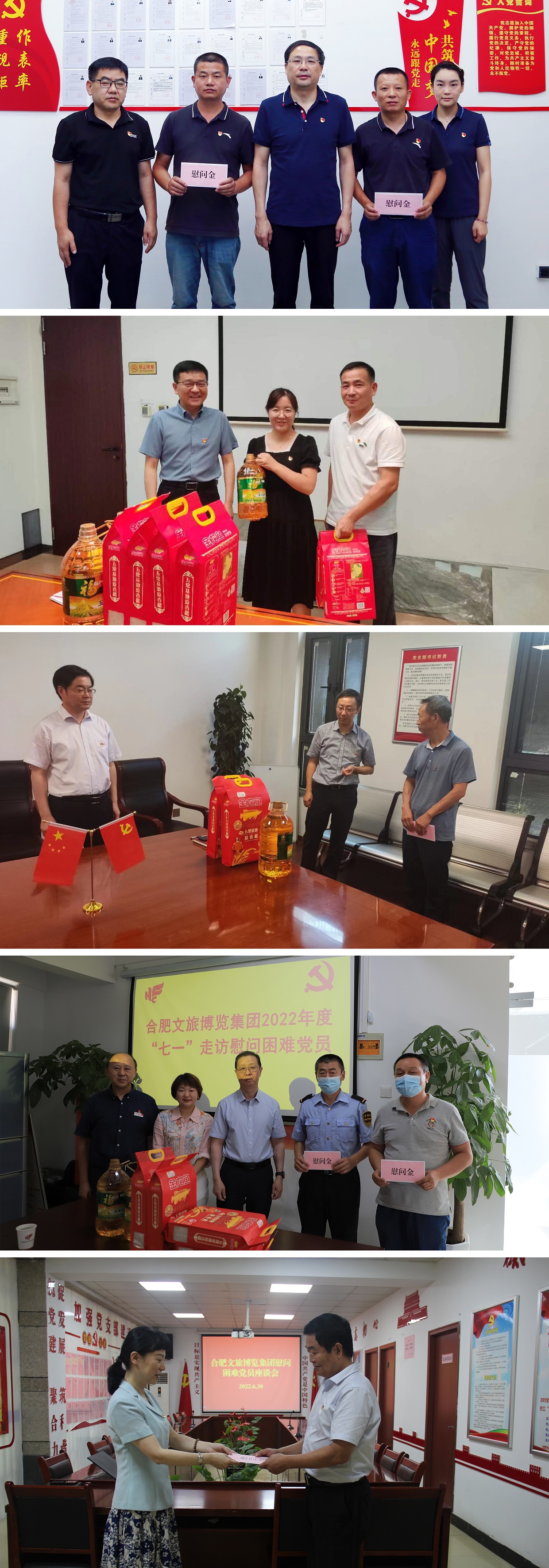 7月1日上午,集团党委副书记、董事、总经理尹传桂在相关人员陪同下,对泓瑞金陵党支部困难党员开展座谈慰问。会上,尹传桂详细了解了他们的生活和工作情况,对他们在各自岗位上辛勤工作和为公司发展所做出的贡献给予了充分肯定,鼓励他们要振奋精神,树立战胜困难的决心,通过努力改善自己的生活,并送上米、油和慰问金。会后,她嘱咐相关单位和部门,要进一步深入基层,及时发现和帮助他们解决难题,用心用情为他们办实事、做好事、解难事。