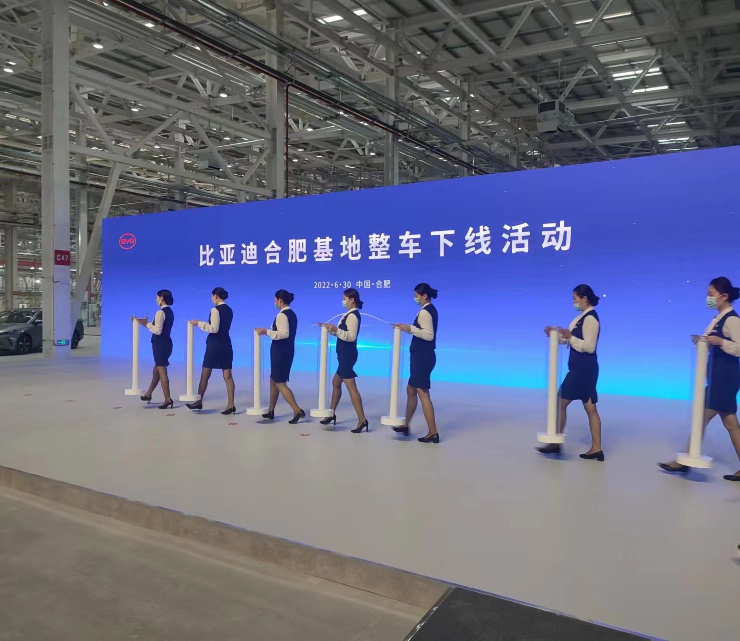 6月30日上午7:08,比亚迪合肥基地项目整车下线仪式在长丰县下塘镇举行,标志着安徽新能源汽车产业迈出了具有里程碑意义的重要一步。