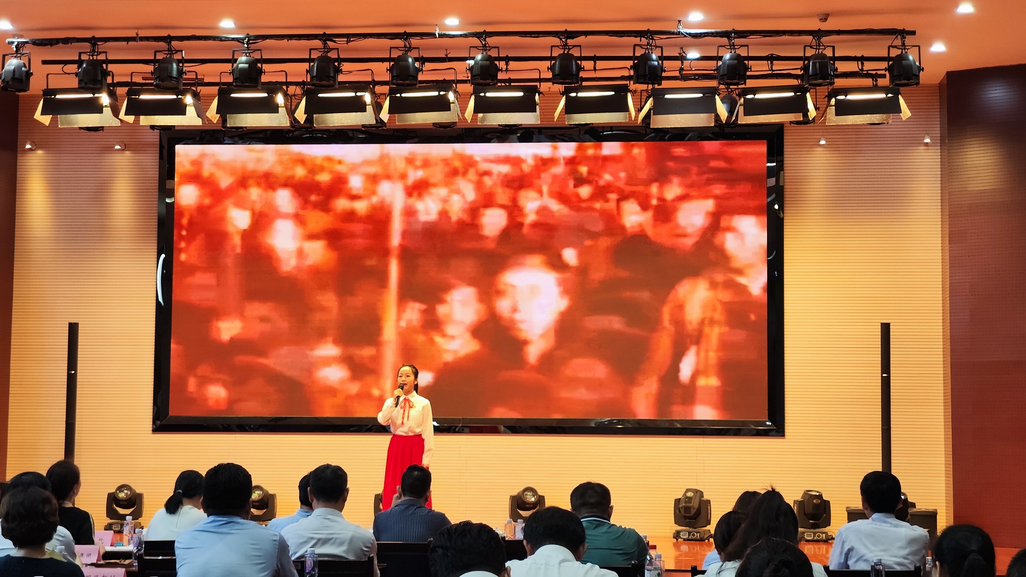 在雄浑的背景音乐中,蔡立、胡炜琳深情地朗诵了《诗颂风华》,他们用真挚饱满的感情抒发了对党的深情,让在场听众为之动容、内心澎湃;鲍启萌的《青春中国》,以富有内在律动、张力的旋律和恢宏的气势,讴歌了正在崛起、正值青春的伟大中国,抒发了“文旅人”对祖国、对党的热爱之情。