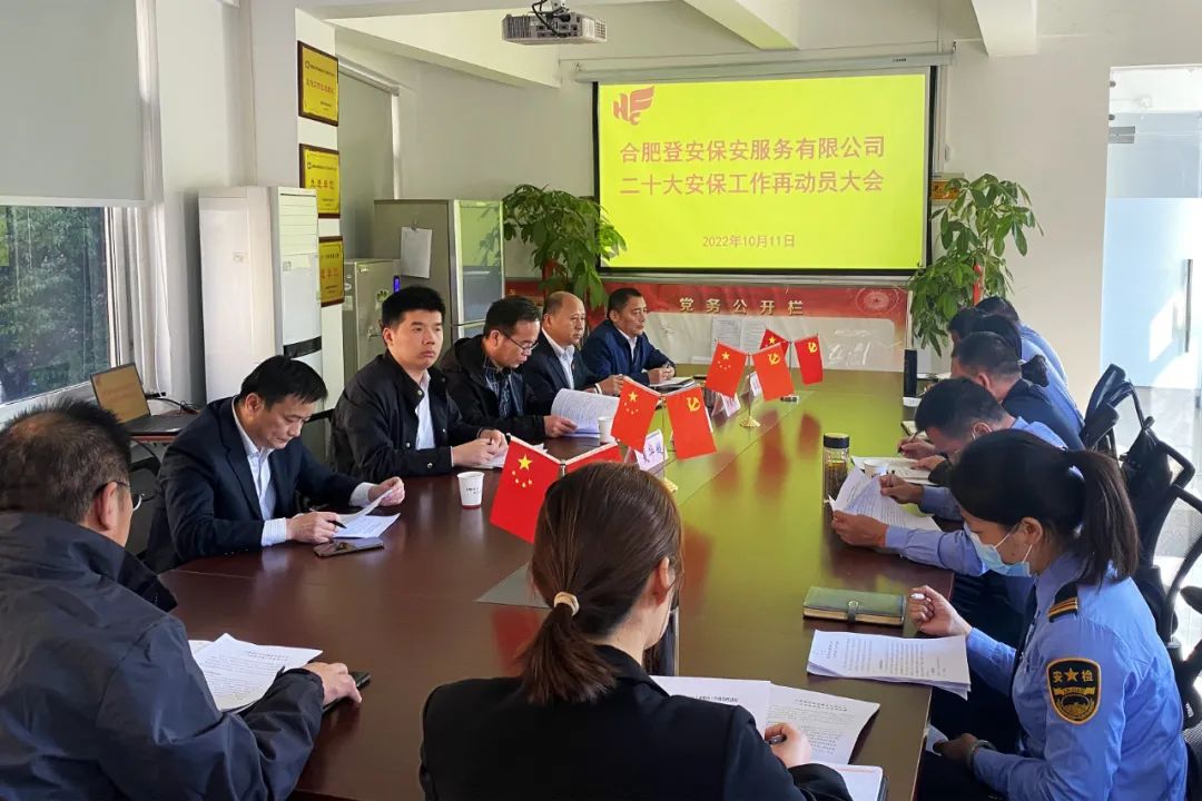 10月11日,合肥登安保安服务有限公司召开党的二十大安保工作再动员大会,进一步分析公司当前的工作形势,安排部署党的二十大安保再动员工作方案。