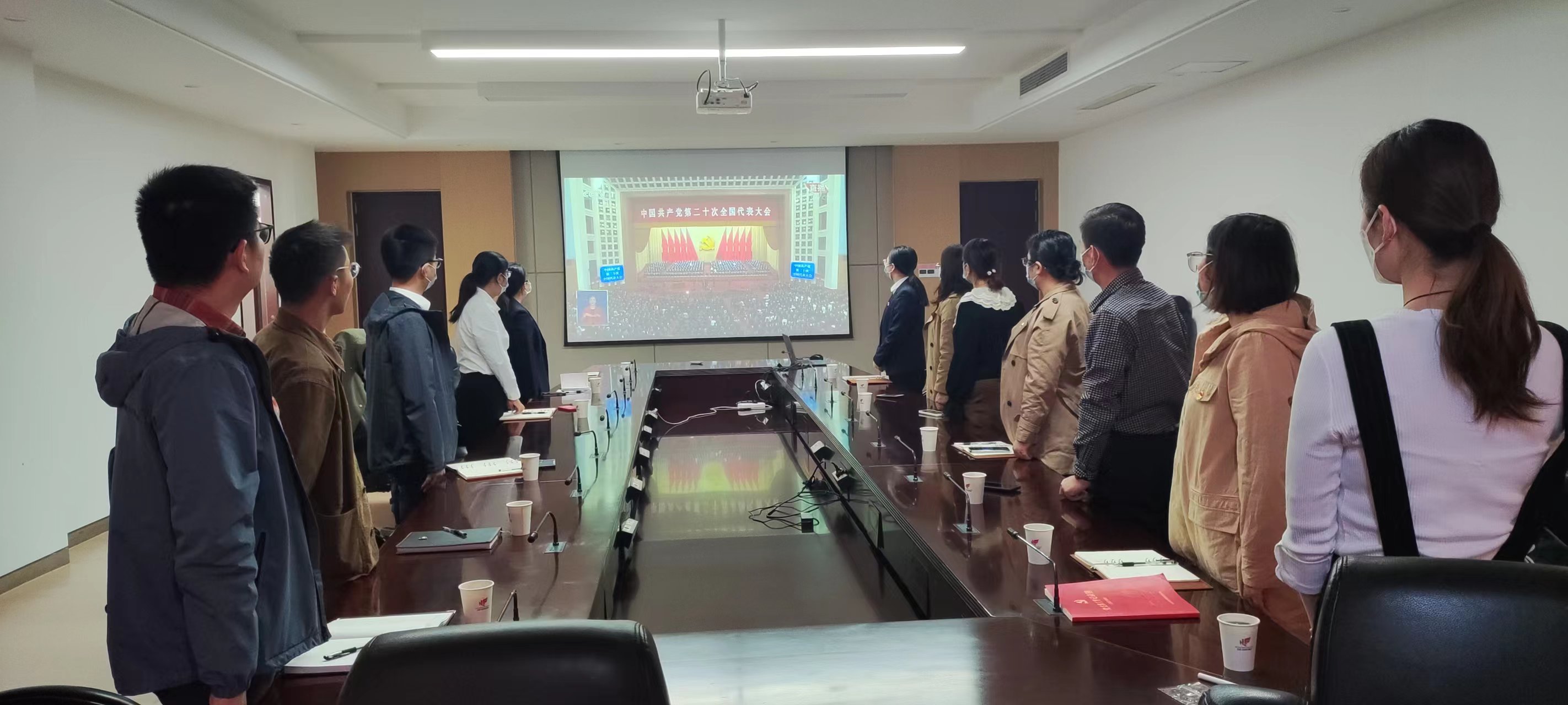 在开幕会期间,大家全神贯注地盯着直播屏幕,一边仔细聆听十九届中央委员会向大会所作的报告,一边认真记录,沉浸在巨大的鼓舞和振奋中,不时响起热烈掌声。大家一致认为,中国共产党第二十次全国代表大会是进入全面建设社会主义现代化国家、向第二个百年奋斗目标进军新征程的重要时刻召开的一次十分重要的大会,是党和国家政治生活中的一件大事。