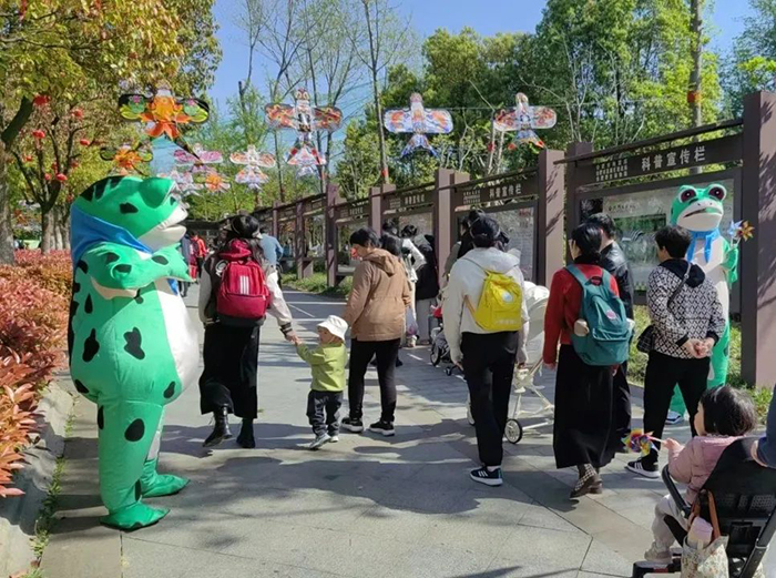合肥野生动物园在假期内开展了“追风的孩子一起去合野撒欢”主题活动。现场风筝长廊非常吸睛,深受游客欢迎。另外现场还有青蛙NPC巡游,每天两场为游客随机发送风车和奶糖,吸引大批游客合影留念。
