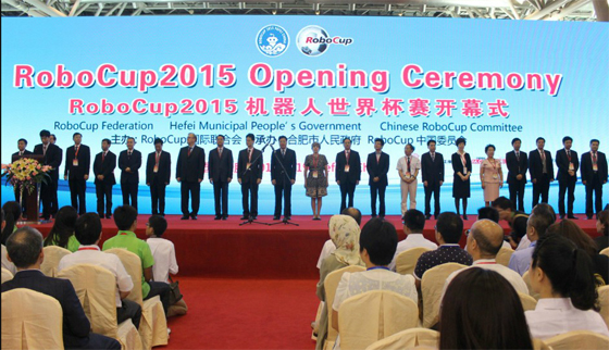7月19日上午,第19届RoboCup机器人世界杯赛在安徽国际会展中心隆重开幕。省委常委、市委书记吴存荣出席仪式并宣布开幕。RoboCup国际联合会主席野田五十澍、市长张庆军致辞。