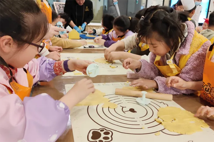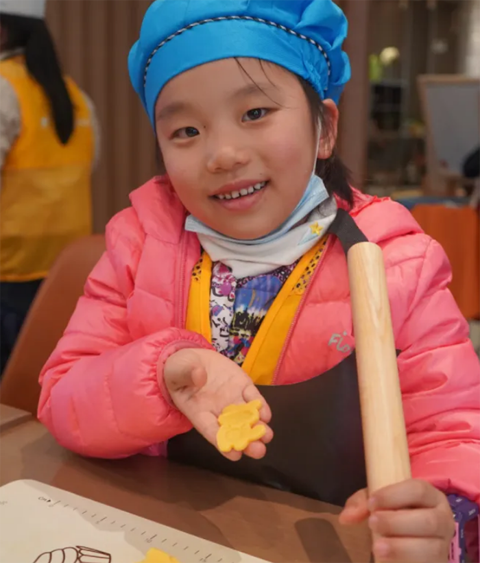 和面、擀面、压形……小朋友们跟着大厨一步步做出了专属于自己的小饼干。
