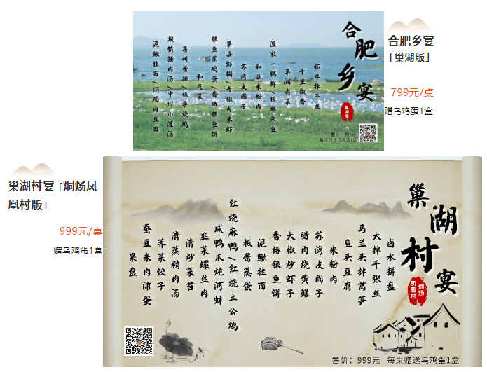 凤栖梧民宿以传承本地美食文化为己任,特推出 合肥乡宴「巢湖版」、巢湖村宴「烔炀凤凰村版」,让游客在旅游的同时能够 品尝到家乡的味道。