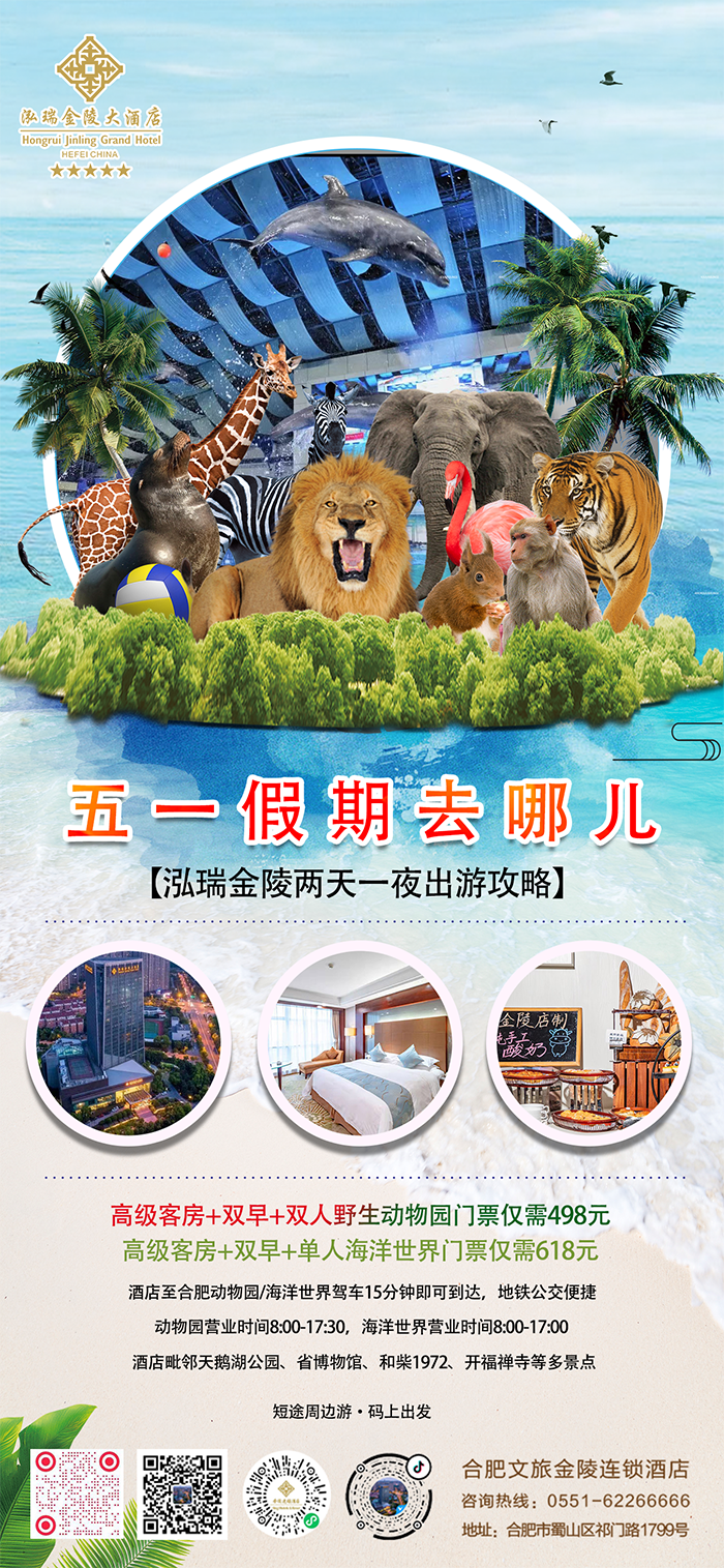 酒店与合肥野生动物园、合肥海洋世界开启梦幻联动,推出客房景点套票,让你尽享美宿美景之旅。