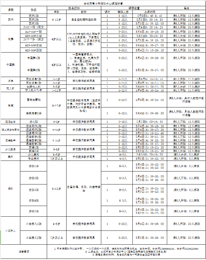 本期公益体验课开放一节免费课时,旨在提高青少年群体校外教育水平,让青少年收获丰富多彩的假期时光。本期公益共开放十三个项目的公益课程,分别是游泳、武术、街舞、中国舞、乐高、无人机、小主持人等,上课时间为5月4日和5日。欢迎各位青少年及家长朋友前来围观。