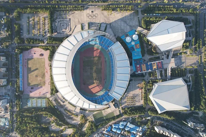 导航到合肥体育中心,如遇交通拥堵、临时交通管制等情况,请按照交通部门指示通行及停放车辆。