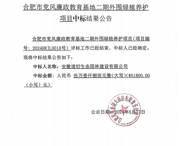 合肥市党风廉政教育基地二期外围绿植养护项目中标结果公告