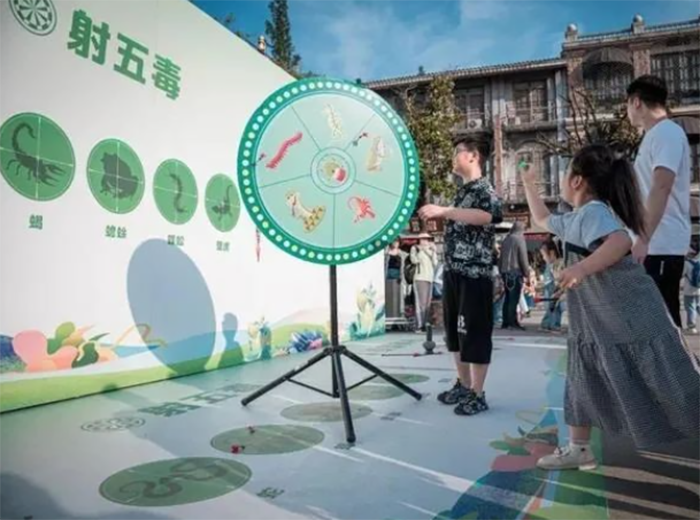 这项活动源自中国传统文化中的五毒,即蛇、蝎、蜈蚣、蟾蜍和蜘蛛,被赋予了象征意义。在射五毒体验中,参与者将使用箭,体验射击这些象征物标靶的乐趣。
