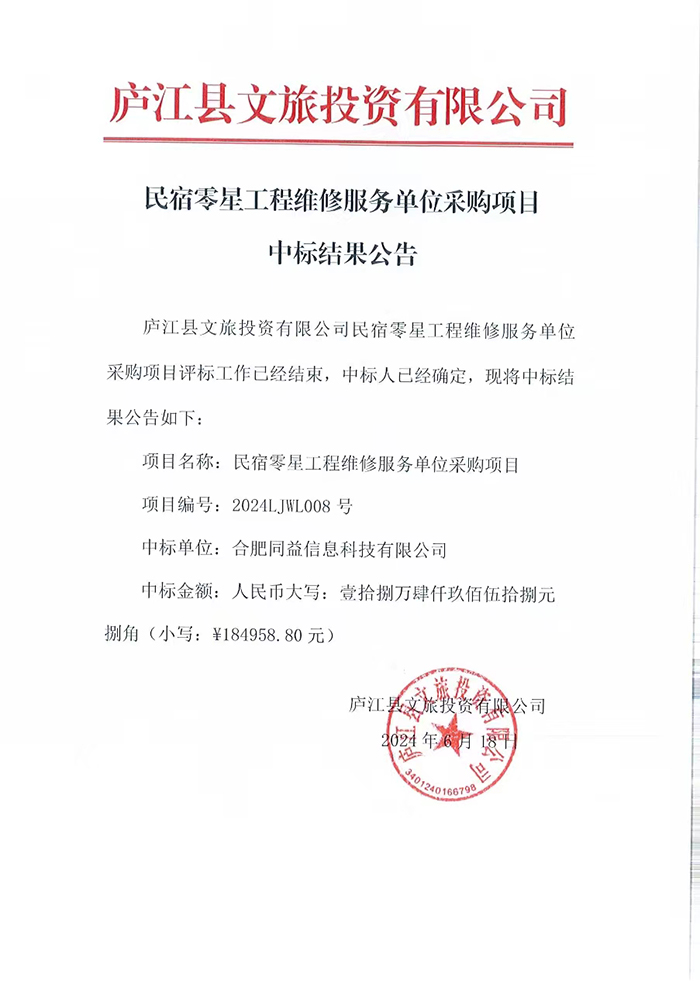 时间:2024-06-18 14:50:24 庐江县文旅投资有限公司 浏览:1293