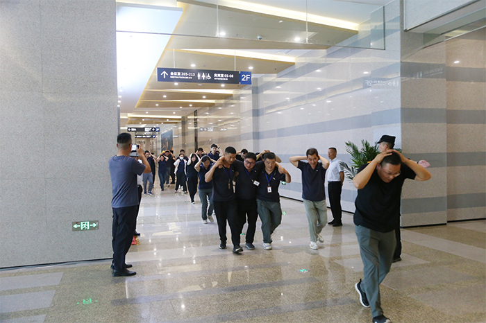 紧接着,现场开展了模拟会议中突发地震时的紧急避险和逃生疏散演练。演练前,会议组织集体观看《地震应急综合演练逃生科普片》,系统学习地震紧急避险常识。随着地震警报拉响,参会人员按照地震时就近躲避、震后迅速撤离的要求开展紧急避险疏散演练。此次演练让参会人员亲身体验了应急避险的流程和注意事项。通过实战化的演练方式,不仅提高了大家的应急反应能力,也增强了大家在面对突发事件时的心理承受能力。