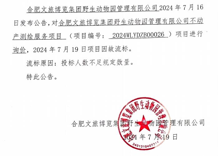 合肥文旅博览集团野生动物园管理有限公司不动产测绘服务项目流标公告