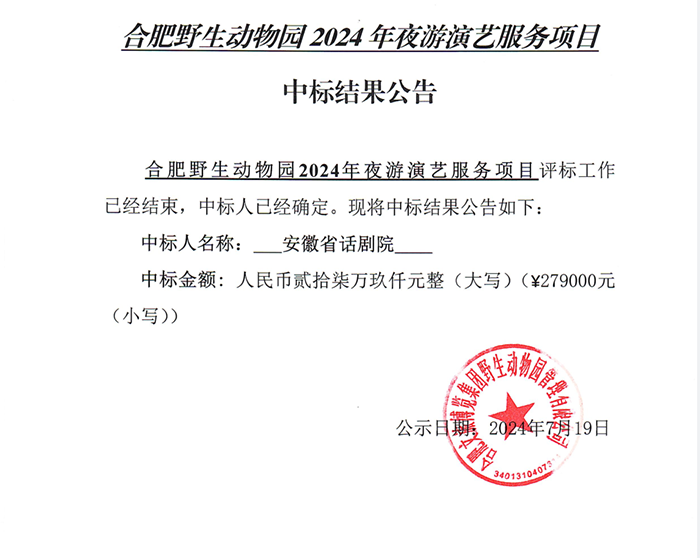 合肥野生动物园 2024年夜游演艺服务项目 中标结果公告