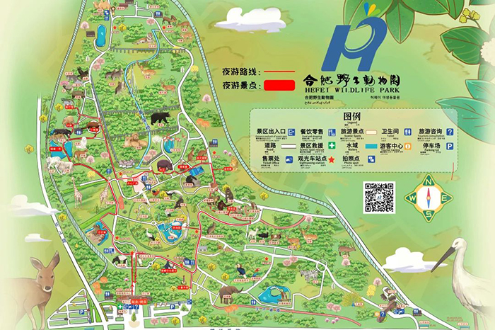 马来貘→日本猴→白狮→白虎→豹→水豚→爬行馆→小熊猫→火烈鸟→河马→细尾獴→袋鼠→金丝猴→灵长区→百鸟园
