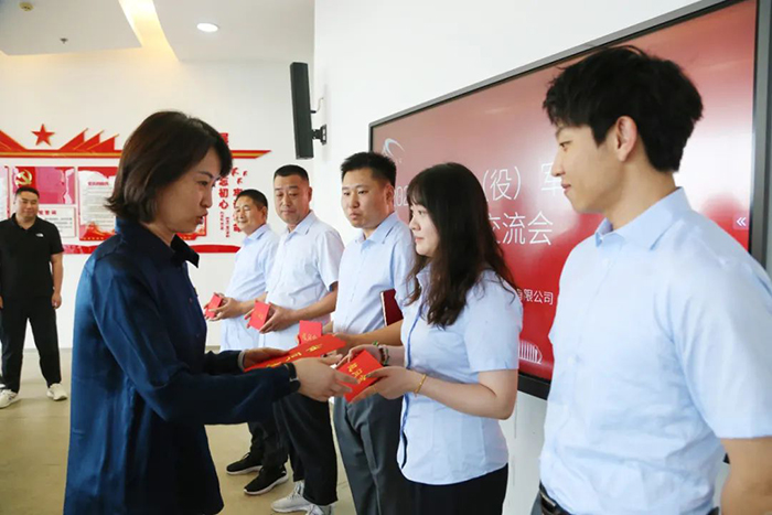 为进一步弘扬爱国拥军的光荣传统,切实做好新时代双拥工作,政文会展党支部于8月1日开展退伍军人慰问座谈会,支部副书记与退伍(役)军人进行亲切交流,并送上了慰问金和节日祝贺,对退役军人始终保持军⼈本色、立足本职岗位建功立业给予充分肯定,希望他们今后能继续保持艰苦奋斗的优良传统和顽强拼搏的精神,凝心聚力促企业发展。