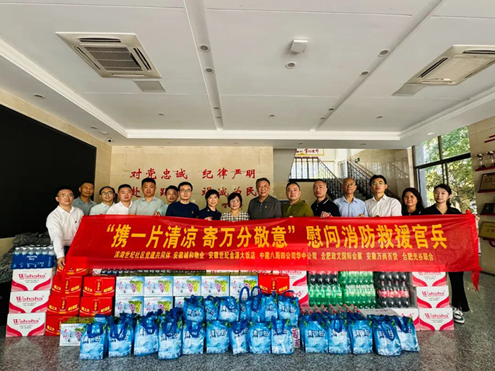 为表达对消防官兵的深切关怀与崇高敬意。8月6日上午,合肥政文国际会展管理有限公司党支部参加了滨湖世纪社区党建共同体组织“携一片清凉 寄万分敬意”夏日慰问消防救援队伍活动,与属地社区多家兄弟单位共同筹备了丰富多样的防暑降温物资,为消防官兵送上专属夏日清凉。